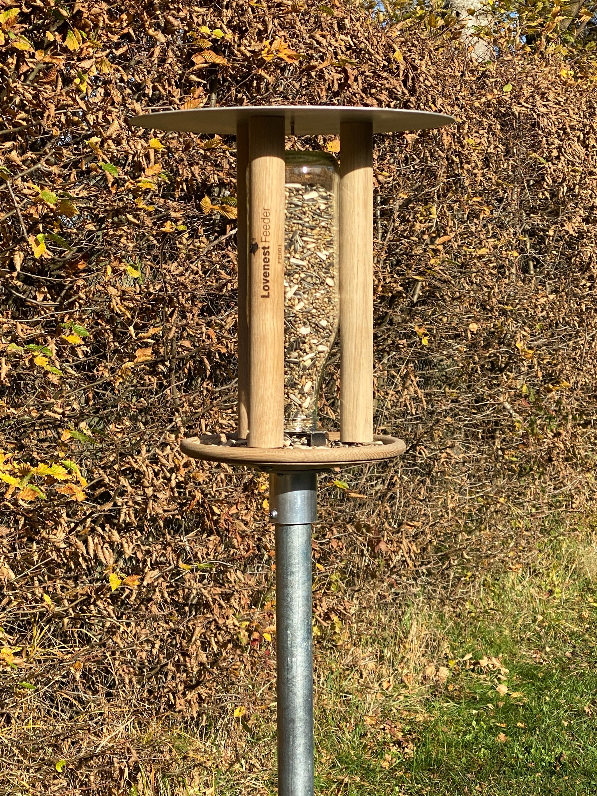 Wo kein Ast oder Haken zum Aufhängen des Lovenests oder des Feeders vorhanden ist, kann der Lovenest-Flansch aus Aluminium verwendet werden. Dieser kann mit drei mitgelieferten Schrauben am Lovenest oder am Lovenest Feeder festgeschraubt und auf eine Stele oder ein Rohr gesteckt werden.
