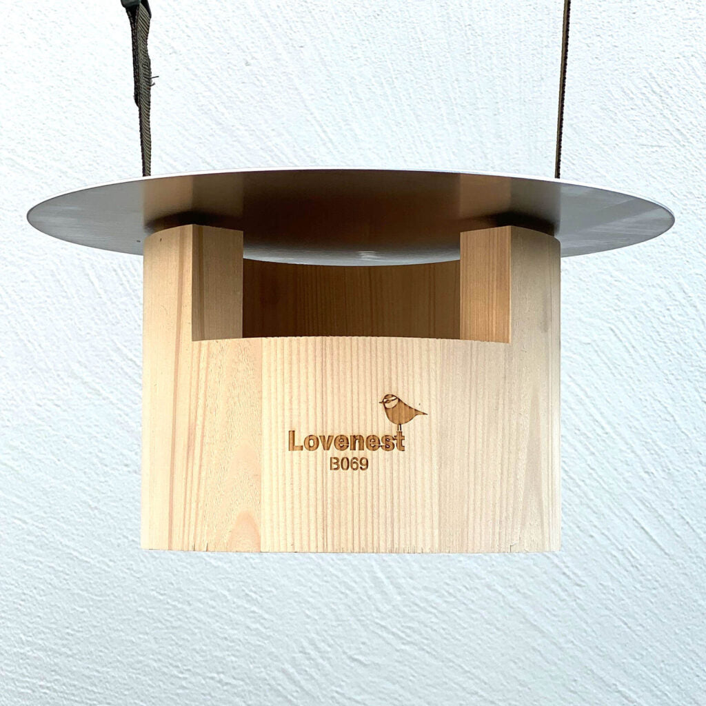 Das Lovenest B wird am besten an eine Wand oder Hausecke unter ein Vordach oder in eine hinten geschützte Hecke gehängt.